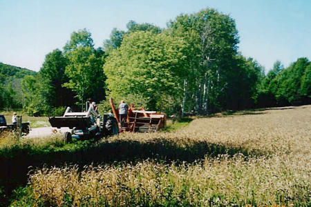 We use an Allis Chalmers Model 60 combine for harvesting the wheat. Our wheat is truly all natural. We plant a cover crop of red clover with the wheat. This naturally reduces the amount of weeds that can enter the field, and is also plowed into the soil where it becomes a green manure fertilizer. We use absolutely no insecticides on our fields.